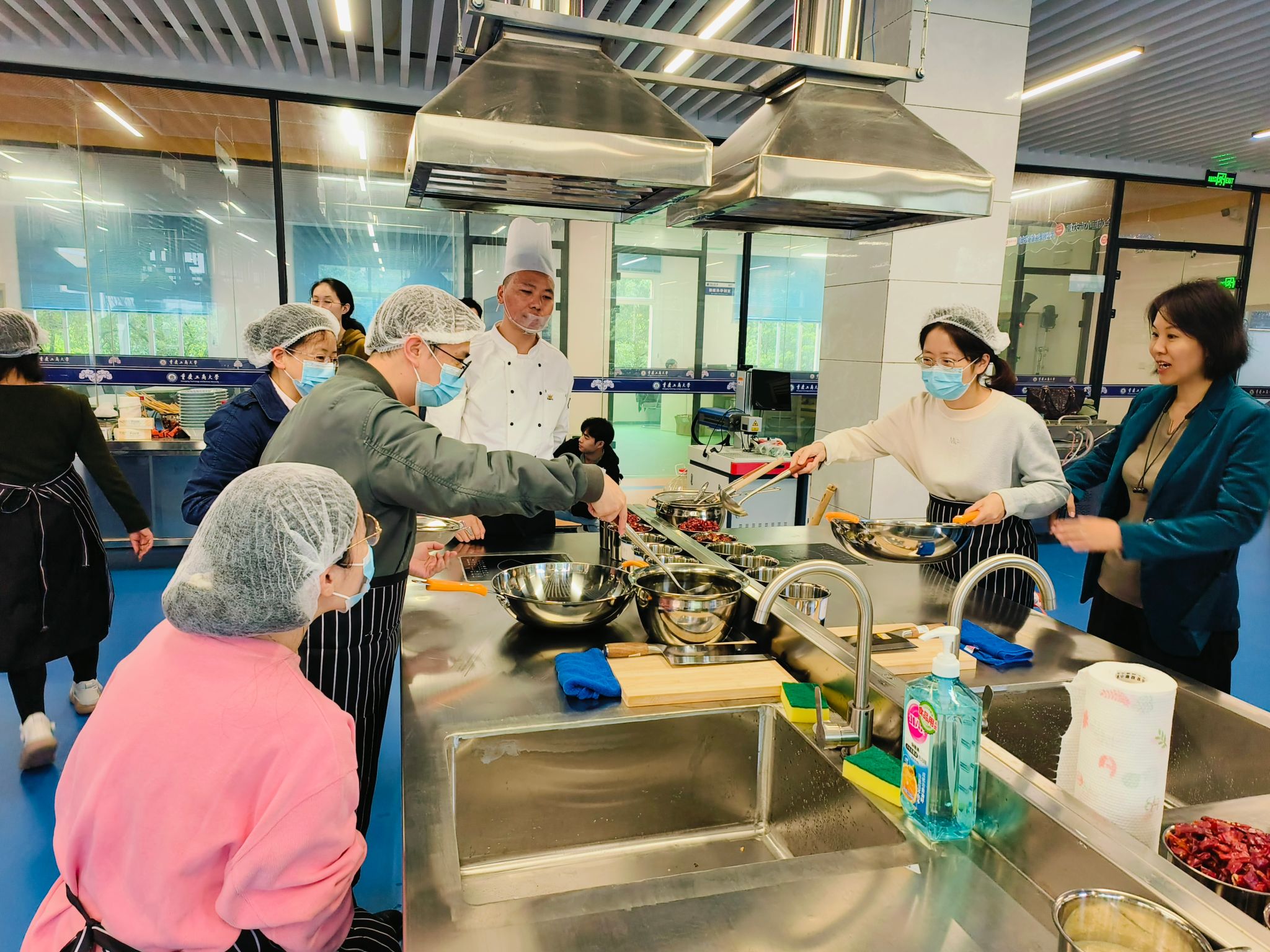 随后,合作企业的资深厨师为教职工们详细讲解了重庆小面的制作流程,从选材、配料到烹饪技巧,无一不体现了重庆小面的传统风味与现代创新。在专业厨师的指导下,教职工们亲自动手,体验重庆小面辣椒油的制作,每一个步骤都力求完美,最终呈现出一碗碗色香味俱全的重庆小面。