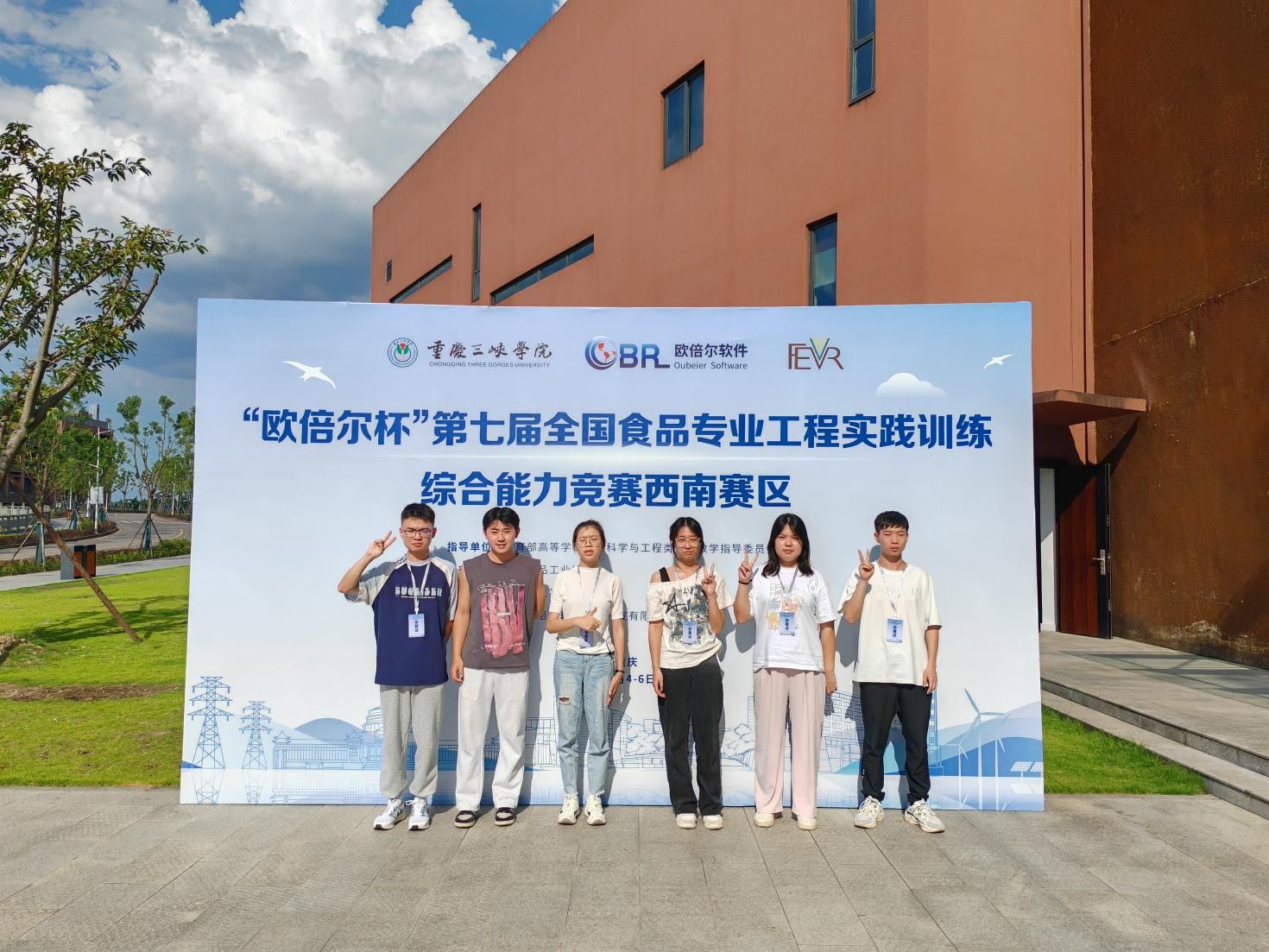 由教育部高等学校食品科学与工程类专业教学指导委员会指导、中国食品工业协会主办的“欧倍尔杯”第七届全国食品专业工程实践训练综合能力竞赛(西南赛区)于7月5日在重庆三峡学院圆满落幕。我院两支参赛队伍与来自西南地区22所高校的38支队伍同场竞技,经过理论考核与虚拟仿真操作两轮激烈角逐,由曾崇轩、王煜鑫、吴浩组成的重庆工商大学一队表现优异,勇夺赛区一等奖,成功获得晋级全国总决赛的资格。张元浩、罗佳文、丁申菊组成的重庆工商大学二队亦有不俗表现。