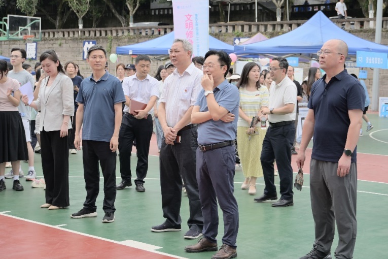 本次活动聚焦“食品营养成分与情绪调节”主题,通过寓教于乐的互动形式,将情绪调控与食物营养成分知识融入趣味游戏中。校领导一行参观了游园会各特色区域,详细询问活动设计理念,并与学生亲切交流。