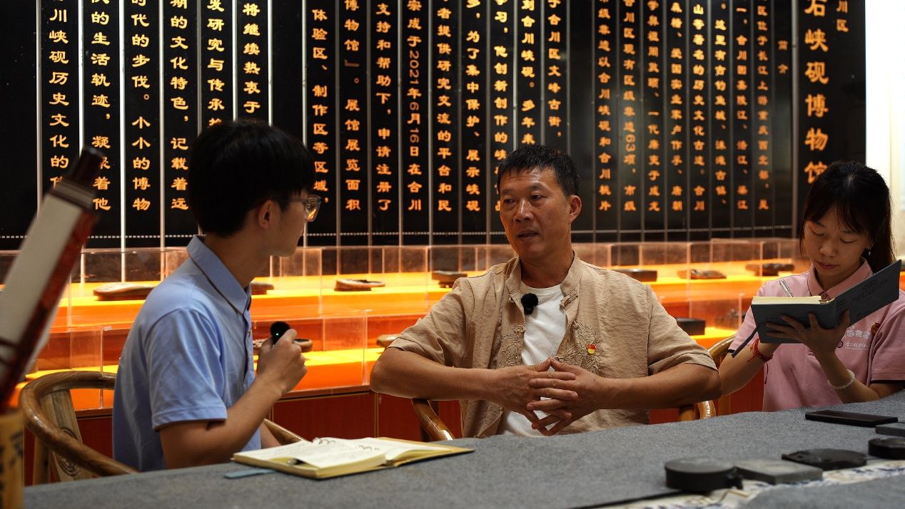 7月8日上午,实践团来到文峰古街的峡砚博物馆,与合川峡砚非遗传承人易宗成老师深入交流。易老师已从事峡砚制作四十余年,他提到:“作为非遗手艺传承人,要学会创新不能守旧,从生活中找灵感。”成员们深刻体会到了“生活即教育”的内涵——无论是手艺传承还是学业事业,都需从生活中汲取养分,在坚守与创新中实现价值增长,这也为后续的红色教育学习埋下“传承与担当”的种子。