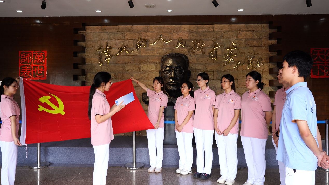 离开博物馆,实践团一行前往陶行知先生纪念馆。在故居陈列馆前,同学们面向团旗庄严宣誓,重温入团誓词,铿锵誓言中饱含对“爱国、进步、民主、科学”精神的践行承诺。在党史学习环节,围绕“青年如何为教育强国作贡献”的讨论中,大家纷纷表示,要以陶行知先生“教育救国”理念为指引,接过“捧着一颗心来,不带半根草去”的精神接力棒,在新时代教育强国征程中贡献青春力量。站在育才学校新旧址之间,同学们更清晰地认识到:教育的火种跨越时空,而青年的责任便是让这份初心在当代延续。