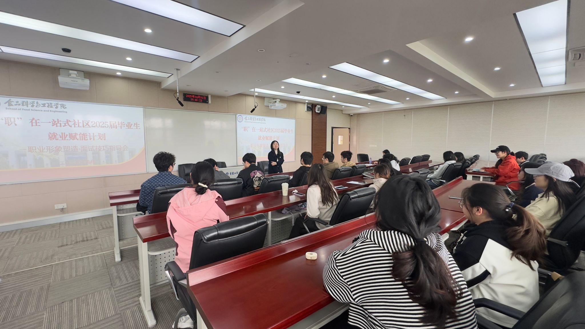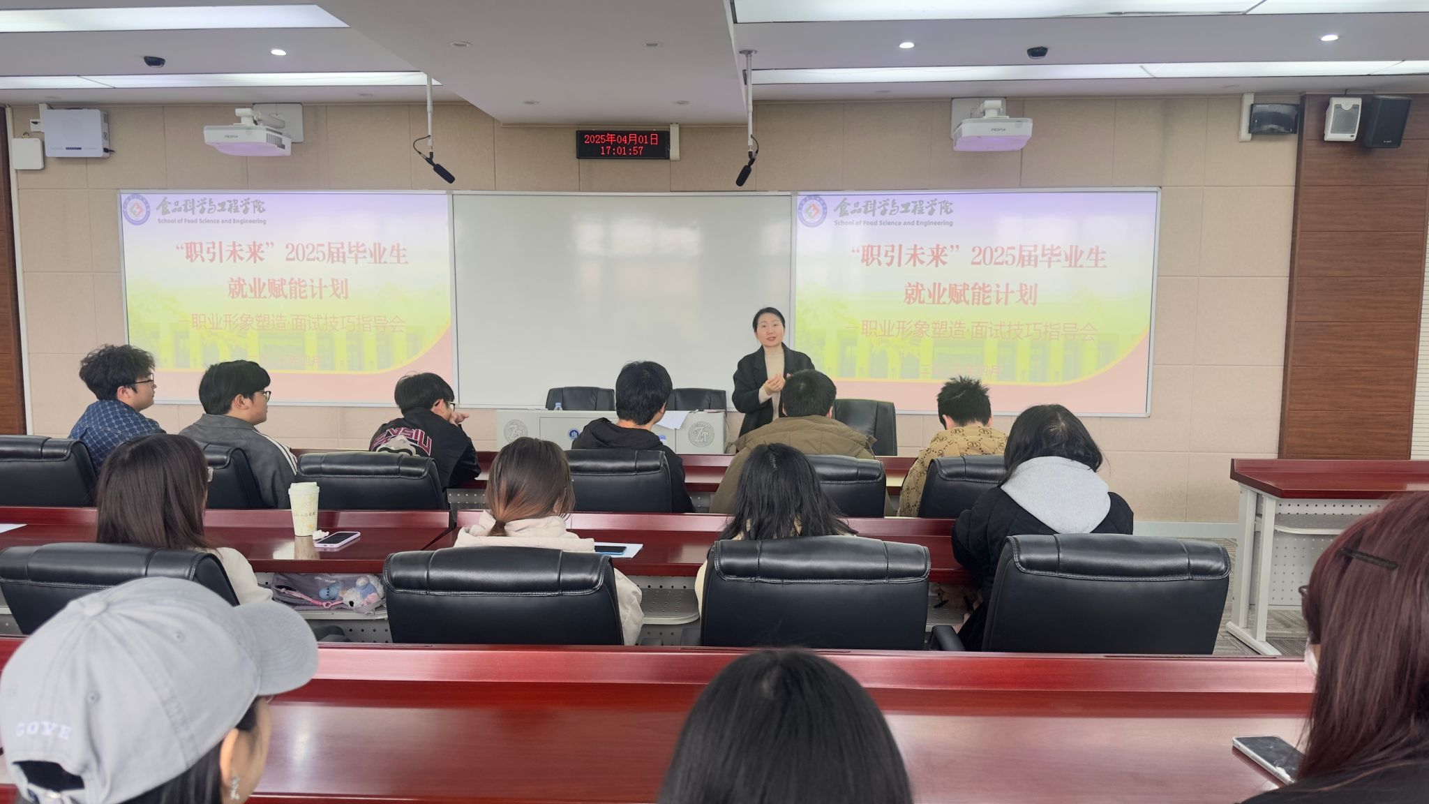 面试技能:从理论到实战的全链条解析。在面试技巧指导环节,学院王星敏院长结合食品行业招聘特点,深入剖析面试常见问题及应答策略。“用STAR法则(情境-任务-行动-结果)结构化呈现项目经历,能让你的优势更直观。”他提醒学生,“面试不仅是能力考核,更是与企业文化的双向匹配。”